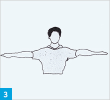 양쪽 어깨를 뒤쪽으로 활짝 펴서 6초간 유지한 후 풀어 준다.